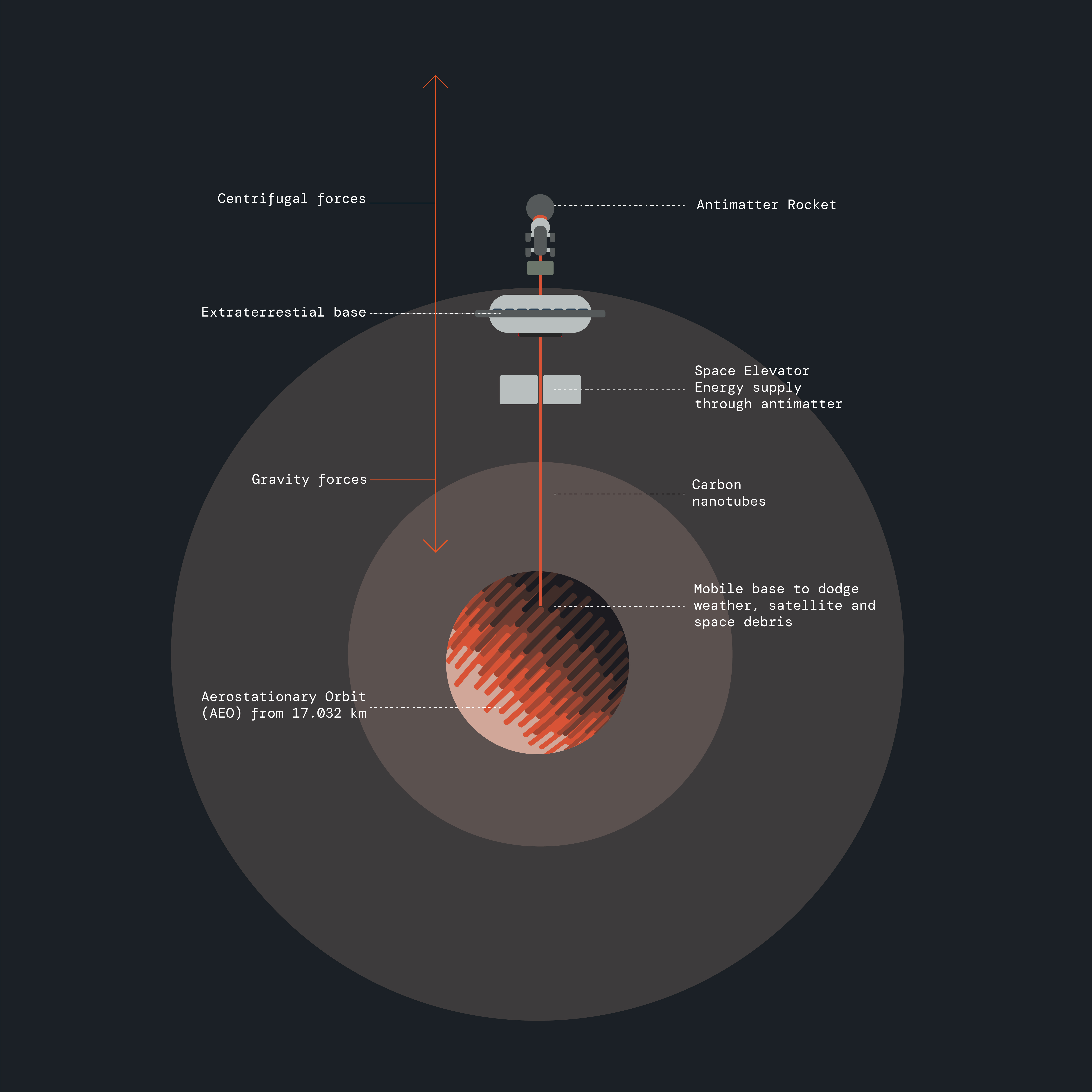 Hypothetische Zukunftsversion auf dem Mars im Jahr 2100. Informationsgrafiken zur Stabilisation des „System Mensch“.
